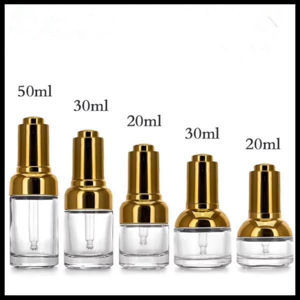 Clear Glass Dropper Bottles Easy Carrying With Gold / Silver Press Lid Cap Images |